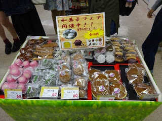 以前ほどのディスプレイではなく、ちょっとした工夫のワゴン売場ですが、和菓子バージョンが復活(?)していました。